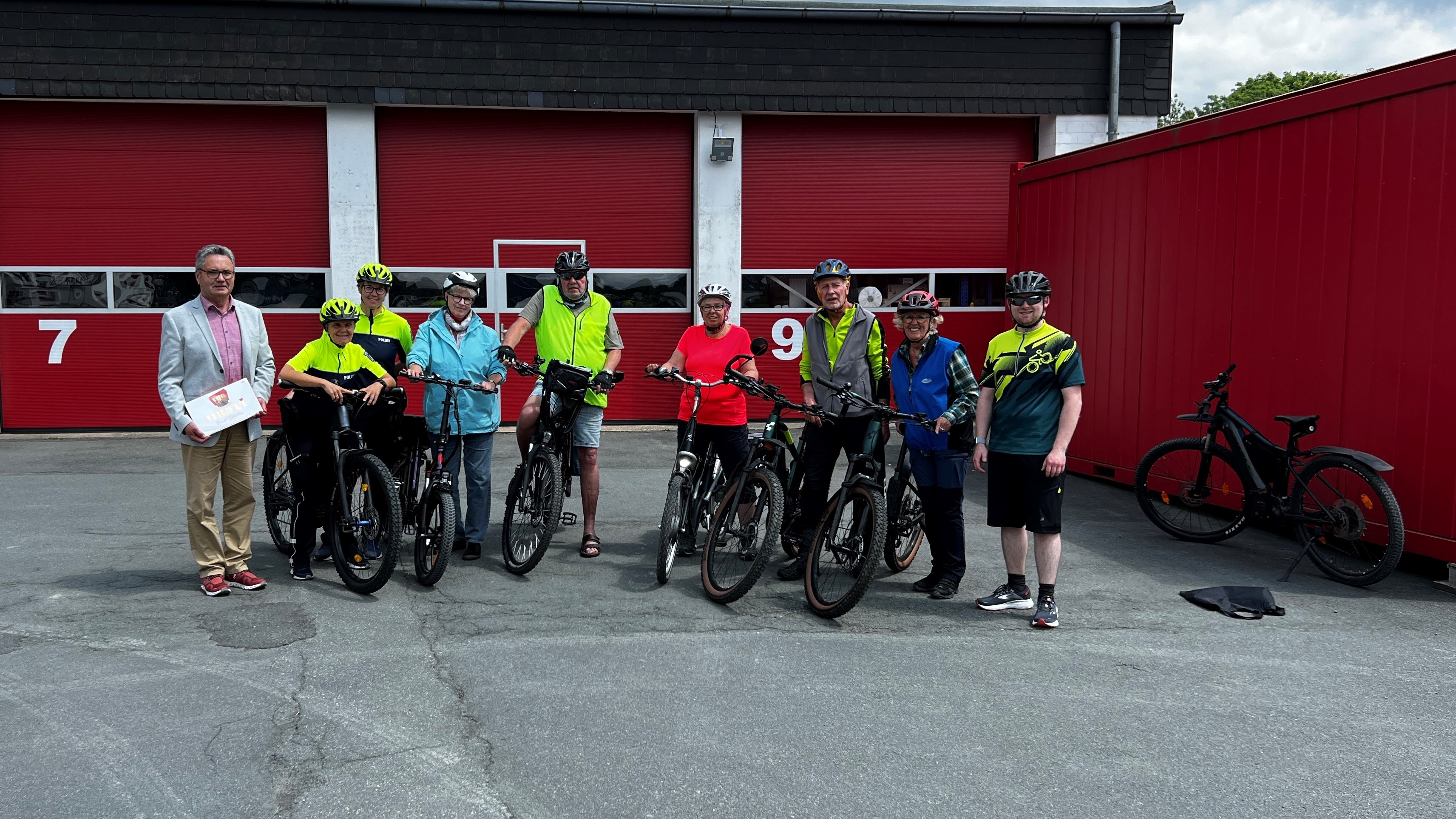 Im Rahmen der Fahrradkampagne STADTRADELN wurde mit der Kreispolizeibehörde ein "Fahrsicherheits-Training" durchgeführt, besonders ausgerichtet für Anfänger bzw. Einsteiger. Die Verkehrssicherheitsberaterinnen informierten die Teilnehmer zunächst über den richtigen Sitz der Fahrradhelme und die entsprechenden Einstellungsmöglichkeiten. Danach wurden die Fahrradlenker überprüft und über die verschiedenen Griffpositionen gesprochen. Die weiteren Ratschläge: Die richtige Sitzposition (Ergonomie) und das richtige Bremsverhalten. Um die Radfahrt auch noch sichererer zu machen mussten einige Übungen absolviert werden: Slalom fahren (Balance halten) und einhändiges Kreisbahnen fahren gehörten ebenfalls zum Trainingsprogramm. Nach jedem Bewegungsablauf gab es Tipps und Anregungen von den Beraterinnen der Kreispolizei, sodass sich am Ende alle einig waren, dass so ein Training nicht nur eine Menge Spaß macht, sondern auch einiges in Puncto Sicherheit bringt.