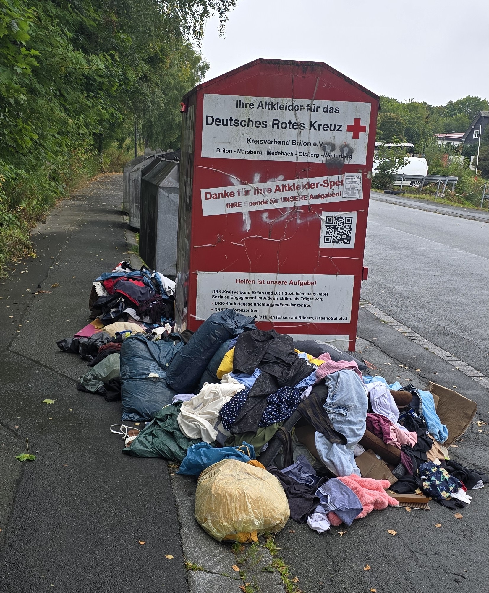 In den vergangenen Wochen häufen sich die Beschwerden über unschöne Zustände an den Altkleidercontainern im Stadtgebiet Winterberg. Immer häufiger werden Kleidersäcke oder Kartons einfach neben oder vor die Container gestellt, wenn diese voll sind., so die Stadt Winterberg in einer Pressemitteilung. Das führt nicht nur zu einem unordentlichen Erscheinungsbild, sondern auch zu zusätzlichen Aufräumarbeiten und Umweltproblemen. Die Stadt Winterberg appelliert deshalb an alle Bürgerinnen und Bürger, Altkleider ordnungsgemäß in den Containern zu entsorgen.