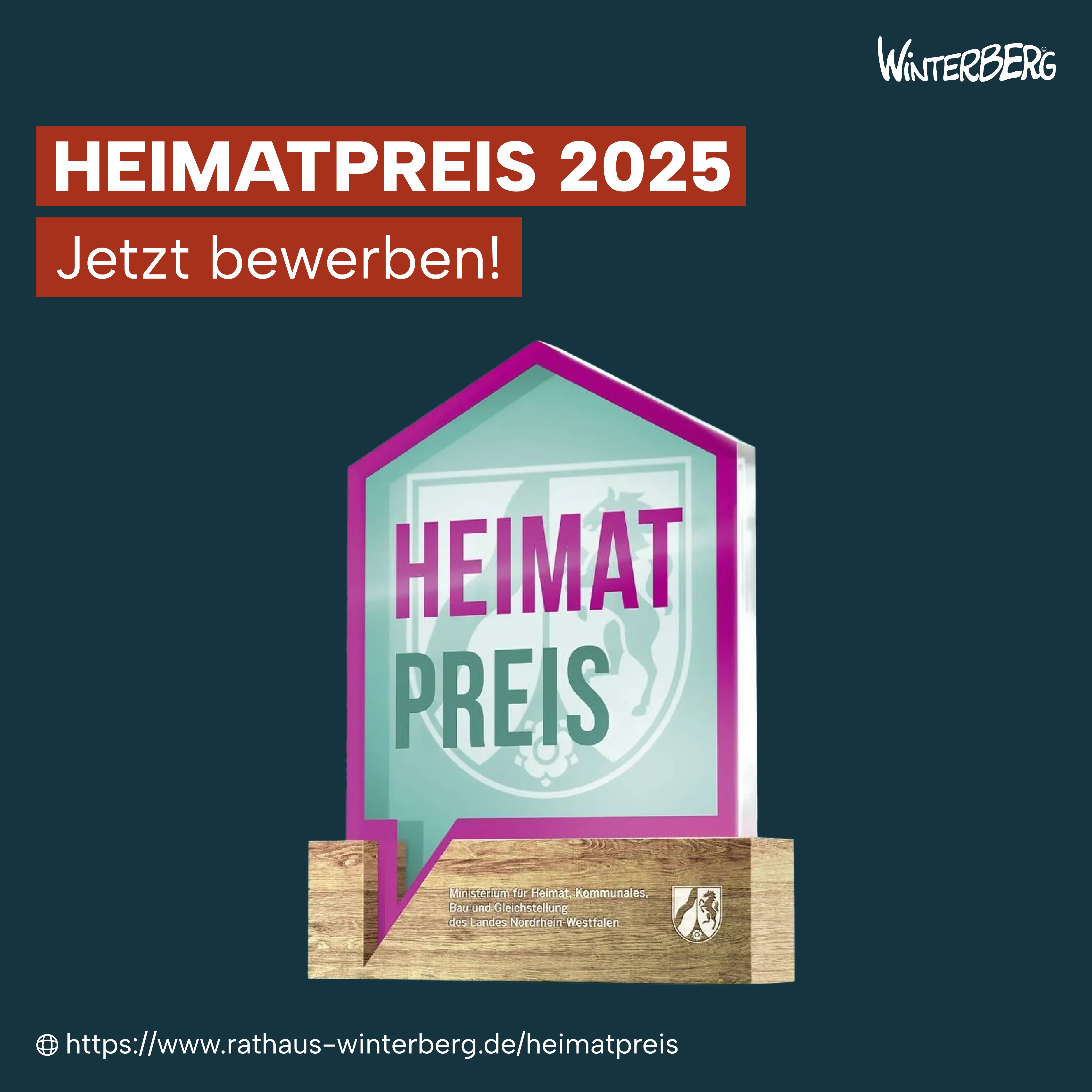 Auch für das Jahr 2025 vergibt die Stadt Winterberg wieder den beliebten Heimatpreis – eine Auszeichnung für Vereine, die sich in besonderer Weise für das kulturelle Erbe, den Gemeinschaftssinn und die regionale Identität einsetzen. Insgesamt 5.000 Euro Preisgeld stehen zur Verfügung. Vereine können sich bis zum 20. August 2025 online bewerben.