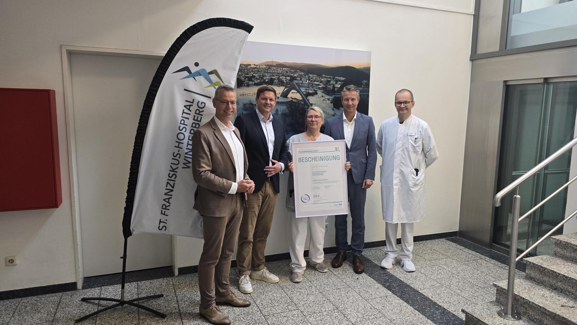 Das St. Franziskus-Hospital Winterberg hat im Mitte des Jahres das Audit für die Zertifizierung als Lokales Traumazentrum erfolgreich bestanden. Damit bestätigt eine unabhängige Prüfung erneut die hohe Qualität der Akut- und Notfallversorgung schwerverletzter Patientinnen und Patienten des Winterberger Krankenhauses.