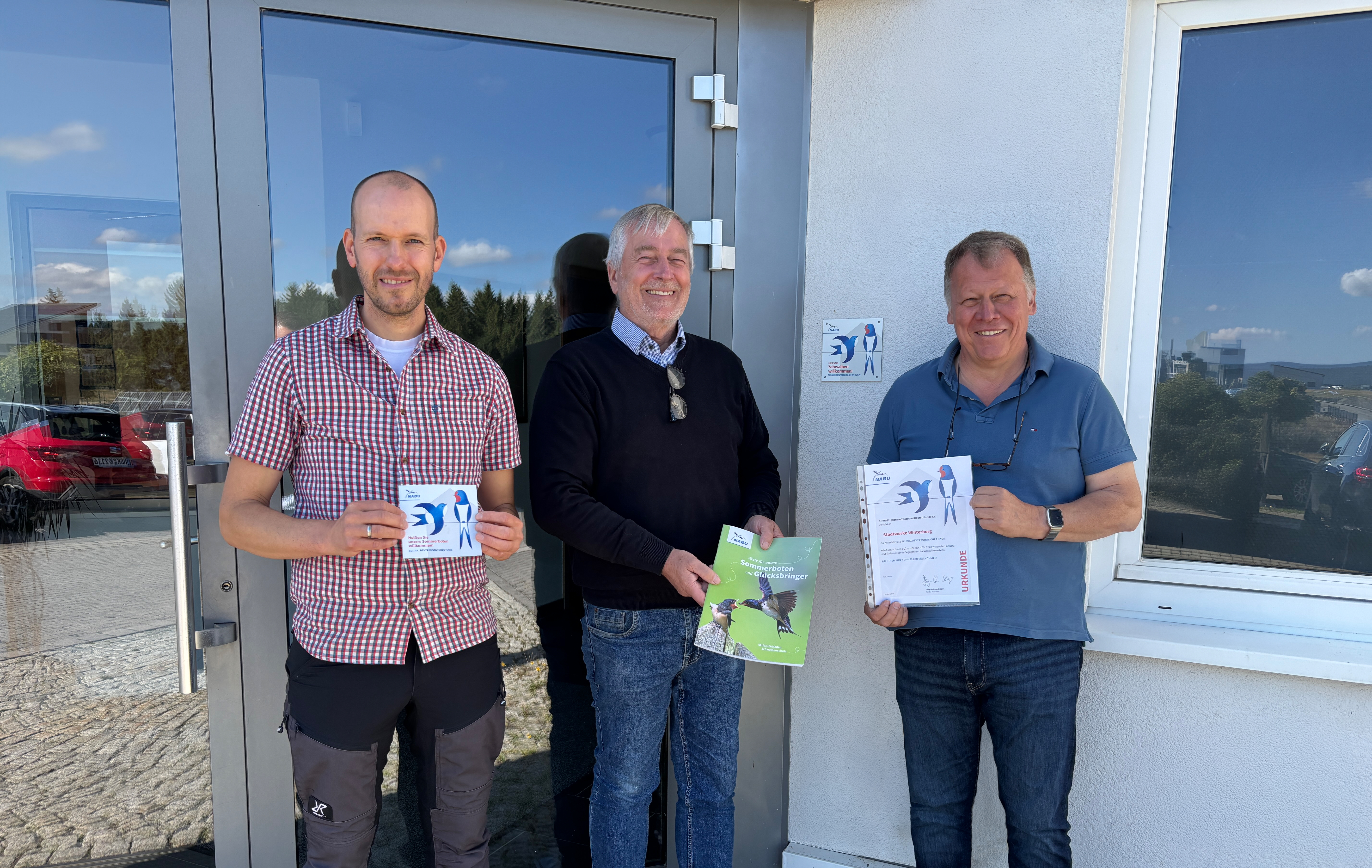 Als Matthias Kleinsorge sich am Tag nach der Rettung mit Fotos der kleinen Schwalbe bei den Stadtwerken bedankte, erzählte er auch von der NABU-Initiative „Schwalbenfreundliches Haus“. Da sich am Gebäude der Stadtwerke bereits seit Jahren eine große Kolonie Mehlschwalben angesiedelt hat, war der Entschluss schnell gefasst: Auch die Stadtwerke wollten sich um die Auszeichnung bewerben und damit ein deutliches Zeichen für den Erhalt der kleinen Flugkünstler setzen.Schließlich hatten die Stadtwerke neben den natürlichen Nestern bereits früher auch künstliche Brutplätze angebracht und so weitere Brutmöglichkeiten geschaffen. Bei einem gemeinsamen Ortstermin mit Kleinsorge wurden zusätzliche Maßnahmen zur Ansiedlung besprochen. Nach einer Überprüfung seitens des NABU war es jetzt dann so weit: Die Stadtwerke Winterberg wurden offiziell als erstes „Schwalbenfreundliches Haus“ in Winterberg ausgezeichnet – ein Titel, über den sich nicht nur die Stadtwerke, sondern auch Matthias Kleinsorge besonders freuen. „Wir freuen uns sehr über die NABU-Auszeichnung – sie bestätigt unser Engagement für unsere gefiederten Mieter und motiviert uns, weitere Maßnahmen zu ergreifen“, so Henrik Weiß, Leiter der Stadtwerke Winterberg AöR.